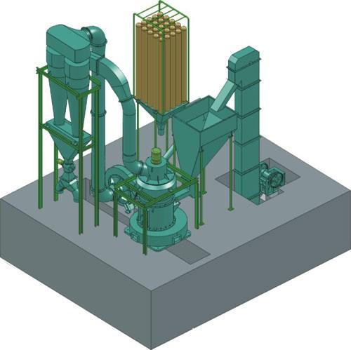 物料研磨后,風(fēng)機(jī)將風(fēng)吹入主機(jī)殼內(nèi),吹起粉末,經(jīng)置于研磨室上方的分析器進(jìn)行分選,細(xì)度過粗的物料又落入研磨室重磨,細(xì)度合乎規(guī)格的隨風(fēng)流進(jìn)入旋風(fēng)收集器,收集后經(jīng)出粉口排出,即為成品。風(fēng)流由大旋風(fēng)收集器上端的回風(fēng)管回入風(fēng)機(jī),風(fēng)路是循環(huán)的,并且在負(fù)壓狀態(tài)下流動,循環(huán)風(fēng)路的風(fēng)量增加部分經(jīng)風(fēng)機(jī)與主機(jī)中間的廢氣管道排出,進(jìn)入小旋風(fēng)收集器,進(jìn)行凈化處理。